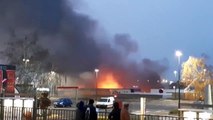 Le magasin Jour de fête, en flammes dans la zone commerciale de Cormontreuil près de Reims