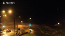 A blizzard battered parts of Northern Ireland overnight.<br /><br />Footage captured in Londonderry showed snow and hail blown sideways by high winds.<br /><br />This footage
