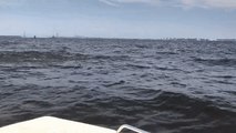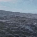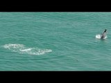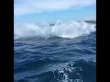<p>Hawaii resident Tracy Mullen captured video of a humpback whale breaching in front of her boat off Kewalo Basin Harbor in Honolulu on January 16.</p><p>Mullen told Storyful she was out on a boat with the company she works for when she and her colleagues saw whales in the distance.</p><p>The group decided to put the boat’s engine on neutral to have a closer look. The crew saw what appeared to be a mother humpback whale and her calf swimming leisurely on the surface.</p><p>At first, only the calf’s fin can be seen but after a few moments, the mother whale jumps within feet of the boat. Mullen can be heard screaming “Oh my God” and laughing as she captured the scene. Credit: Tracy Mullen via Storyful</p><br />