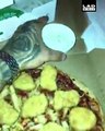 A hungry squirrel in East London scoffs the contents of a discarded Domino's Pizza's Garlic and Herb dip pot. <br /><br />In the video, filmed on Thursday (January 18) by the River Lea in Hackney, the squirrel gets his face right in the pot and is clearly enjoying the treat. <br /><br />He then drops the completely cleaned-out pot to the ground and scampers off in search of his next meal.