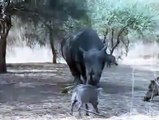 Rinoceronte ataca con su cuerno