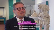 Lebanon's national museum unveils five ancient sculptures, including a Phoenician bull's head returned by the United States, that were looted during the civil war.<br />