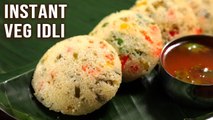 Instant idli recipe is one of the most famous Indian breakfast which is very easy to prepare and it is prepared from rava or suji. Vegetable instant rava idli recipe is a healthy version of idli which can be prepared in few minutes. This instant rava idli recipe is prepared in cooker. The vegetable instant idli can be a good option for kids lunchbox or as a snack itself.\r<br>\r<br>The ingredients of instant idli recipe\r<br>2 Cup Siji\r<br>2 Cup Curd\r<br>Onion - 1 Medium Size (Finely Chopped)\r<br>Capsicum - 1 Small Size (Finely Chopped)\r<br>Carrot - 1 (Finely Chopped)\r<br>Peas - 1/2 Cup\r<br>Cabbage - 1/4 (Finely Chopped)\r<br>Eno Fruit Salt - 1 1/2 tsp\r<br>Salt To Taste\r<br>\r<br>The preparation of instant idli recipe\r<br>Mix suji and curd well in a mixing bowl\r<br>Add all vegetables and salt in the mixture and mix well\r<br>Add water to make the consistency of mixture like idli batter\r<br>Allow the batter to rest for 10-15 minutes\r<br>Grease the idli trays with oil.\r<br>Add Eno and mix well and put the mixture on the tray\r<br>Arrange the trays so that steam can flow to all tray\r<br>Boil water in cooker and put idli tray in the cooker\r<br>Make flame high and cover the cooker and cook for 10-12 minutes\r<br>Check after 10-12 minutes if idlis are cooked\r<br>Allow the idlis to cool\r<br>Take the idlis from the stand and idlis are ready to be served.