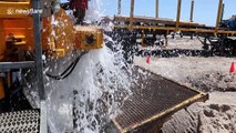 YouTuber Adam Spires reports on the current state of Cape Town's water shortage and what the government and companies are actually doing to solve the crisis. <br /><br />The video, shot last week (February 1), includes a walkthrough of a borehole and desalination plant at Strandfontein in south Cape Town.<br /><br />It also takes a closer look at the work that Newlands Spring and companies are actively doing to provide more desalination resources. <br /><br />The companies are shown using techniques such as borehole taps to draw millions of litres of groundwater from up to 50-metres down as a temporary measure. <br /><br />Long-term desalinisation plants are also planned in the area. <br /><br />The purpose of the pipes in the video is to suck water from the ocean in a bid to bring more drinking water into the system.<br /><br />According to local reports, there are currently seven desalination projects underway in Cape Town. <br /><br />The coastal South African city of about 4 million people is about to run out of fresh water. It implemented new emergency water restrictions on February 1, the day this video was filmed. <br /><br />Residents can now only use 50 litres of municipal water per day. An average toilet uses 3-4.5 litres each time it is flushed and a 10-minute shower can use as much as 80 litres. <br /><br />Following three years of persistent drought, the government says that Day Zero - when it will be forced to turn off most taps - will be April 16. <br /><br />Cape Town's Deputy Mayor Ian Neilson told local media that the water source projects "will not provide sufficient supply to avoid Day Zero this year" but would "help us to become more resilient in weathering our next dry season."<br /><br />++CLIENTS PLEASE NOTE: MAY CONTAIN COPYRIGHT PROTECTED MUSIC++<br />Commercial music and or performances must be cleared according to your own local music performance and copyright agreements with your applicable collecting society. You have editorial responsibility for use of all and any content provided.
