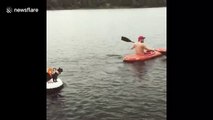 Guy Goes Snow Kayaking Down Mountain