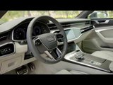 The design language in the interior of the new Audi A7 Sportback is reduced and clean. The horizontal lines and sleek instrument panel convey a feeling of airy spaciousness. The center console is inclined toward the driver and underscores the Gran Turismo's sporty character. In the interior, the cockpit architecture and the MMI monitor merge to form a homogeneous surface. Most vehicle functions can be controlled via two displays in a black-panel look. The upper display is integrated almost invisibly into the dashboard. The choice of colors, upholstery materials, inlays and interior lighting fit perfectly into the futuristic lounge atmosphere.