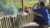 A fresh graduate from Kalasin province in northeastern Thailand makes steamed sticky rice topped with seasoned pork. The delicacy sells like hot cakes during the New Year celebration.