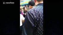 Three Egyptian police officers on patrol outside a bank saved a 5-year-old boy's life after he fell out a window from a three-storey building. Report by Willmotta. Like us on Facebook at http://www.facebook.com/itn and follow us on Twitter at http://twitter.com/itn