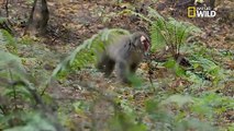 Un mâle macaque japonais attaque une femelle