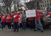 <p>West Virginia lawmakers reached a deal on Tuesday, March 6, that would end the nine-day teachers strike. The deal would give all of the state’s public employees a 5 percent increase, according to Gov. Jim Johnson</a>.</p><p>Teachers at the state capitol, where they have been gathering throughout the strike, cheered when the deal was announced to them. Delegate Brent Boggs, a Democrat, announced via a bullhorn the details and the process to finish the deal, saying the legislation should reach the governor’s desk for his signature by the end of the day.</p><p>Teachers union leaders told local news</a> that if the legislation was signed by the governor by the end of the day, teachers would return to work on Wednesday.</p><p>Republican lawmakers, though, said the pay increase comes with budget cuts, including $20 million reduction to general services and Medicaid, the news report said. Credit: West Virginia Democratic Pary via Storyful</p><br />