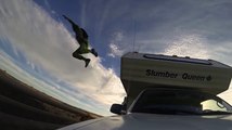 Il saute d'un pont en base jump depuis un camping car