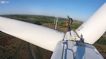Il saute en Base Jump depuis une éolienne... Vertigineux