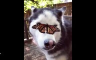 Husky Has Adorable Reaction to Butterfly Landing on Her Nose