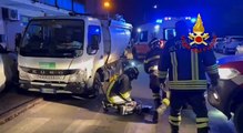 Incastrato sotto il camion: soccorso operatore ecologico in strada Morane