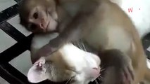 Un chat tente de faire la sieste, mais son copain le singe a d'autres projets (Vidéo)