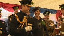 The Duke and Duchess of Cambridge faced down snowfall and ferocious winds to watch a traditional St Patrick's Day parade of the Irish Guards. Report by Maylamh. Like us on Facebook at http://www.facebook.com/itn and follow us on Twitter at http://twitter.com/itn