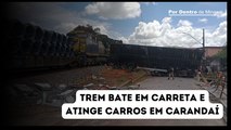 Trem bate em carreta, que atinge carros e deixa um ferido em Carandaí