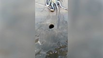 SOUND ON: Video shows large octopus squeezing into small den