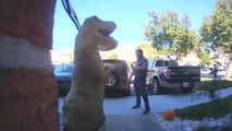 Man Gets Pranked by Person in Dinosaur Costume