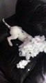 Funny dog gets caught eating toilet Paper and attacks camera
