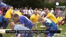 Teams of enthusiasts gathered to compete in the World Custard Pie Throwing Championship on Saturday (6 June) in Coxheath in Kent.