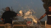 filmed at 600 frames per second, slows everything down 20 times. Not sure what the barrel length was but is was loud with some huge muzzle flash