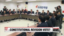 Korea's ruling and main opposition parties... continue to lock horns on how to revise the decades-old Constitution.<br />With no visible progress made, minor blocs urged the two sides to get past political differences and meet half way.<br />Park Hee-jun gets us up to speed with the developments. Minor parties want a speedy settlement on the constitutional revision.<br /> In a joint statement Thursday,... the Bareun Mirae Party, Party for Democracy and Peace, and Justice Party demanded that the ruling Democratic Party and main opposition Liberty Korea Party reach a compromise-- saying that the important issue of constitutional revision has been stuck in gridlock due to their partisan disputes.<br /><br /> They also urged the major parties to present a clear alternative to the current electoral system,... so that the system can better represent the people.<br />The joint statement called for an agreement on the reform of the electoral system,... through a political negotiation body that consists of the floor leaders of the parties and their members.<br /><br /> Top officials of the minor parties later met Democratic Party floor leader Woo Won-shik and Liberty Korea Party floor leader Kim Sung-tae to deliver their message.<br />They proposed establishing a separate council of top representatives from the four floor negotiation blocs to make progress on the constitutional amendment.<br /><br /> While Woo welcomed the idea of a new body,... he emphasized that the party adheres to the government's bill on reforming the power structure.<br />Meanwhile, Kim turned down the proposal,... but said his party will make efforts concerning the electoral system.<br /><br />Park Hee-jun, Arirang News. <br />