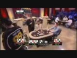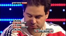 Flush of Phil Hellmuth stumbled over Full House of Tom Dwan in Poker Tournament - Premier League Poker No Limit Texas Holdem.