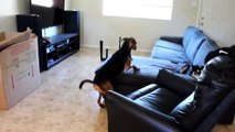 Un chien porte des bottines pour la première fois