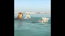 Des tigres nagent en pleine mer... Magnifique