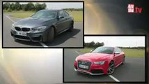 We test the BMW M4 against the benchmark setting fast coupe, the Audi RS5.<br /><br />BMW M4 review: http://bit.ly/1lb81cD<br />Audi RS5 review: http://bit.ly/1nD11rN<br /><br />Subscribe to our YouTube channel http://bit.ly/11Ad1j1<br />Subscribe to the mag http://subscribe.autoexpress.co.uk/yt<br /><br />The arrival of a new BMW M car is always big news for performance car fans, and the new M4 is no exception. <br /><br />Costing almost £60,000, the replacement for the legendary old BMW M3, the M4 has moved away from the V8 power plant in the old car, and is now powered by a 425bhp twin-turbocharged straight-six engine. <br /><br />Meanwhile, the similarly prices Audi RS5 is propelled by a 4.0-litre V8, which produces 430bhp. It's also mated to the Audi quattro four-wheel drive system. Like the BMW, it also features a dual-clutch gearbox, the Audi S tronic system. <br /><br />There's no denying the Audi lacks the fun factor of the BMW - the quattro four-wheel-drive system prevents the lurid powerslides than you can really go for in the M4. You can also feel the weight of the engine over the front axle in the RS5, but it certainly doesn't feel slow at all.<br /><br />Overall then, the RS5 feels very punchy, and the gearshift is also really nice - the same can be said for its V8 soundtrack. It's not a track machine though, and the car from Neckarsulm is more of a very stable and very rapid cruiser.<br /><br />Meanwhile, the BMW M4 feels very raw and very serious, especially when all the settings are put at their sportiest via the M1 switch on the steering wheel. These also turn the traction control and stability control off.<br /><br />With no electronic aids, the M4 is always trying to get its tail out. However, the body control is amazing, but there is a feeling that it's all a bit artificial. The same can be said for the engine note, which has been enhanced. <br /><br />The M4 is a proper M car though, and something BMW can be truly proud of. It set a lap time of 1m09.9s, compared to the 1m12.2s set by the Audi - that's 2.3s quicker.