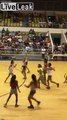 Il marque un panier de basket en ramassant le ballon au milieu de terrain !