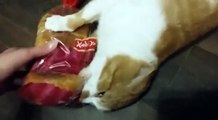 Un chat ne veut pas rendre le pain
