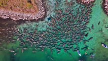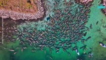 A filmer captured a “manatee mating ball” on video while canoeing with a friend in Florida.<br /><br />A manatee mating ball or manatee mating herd is how these aquatic mammals reproduce.<br /><br />“Manatees do not form permanent pair bonds like some animal species. During breeding, a single female, or cow, will be followed by a group of a dozen or more males or bulls, forming a mating herd,” according to Save the Manatee. <br /><br />At the start of the video, a group of manatees are seen clustered together in the water, which is called a manatee mating ball.<br /><br />“While canoeing with a friend, we spotted a manatee mating ball,” the filmer said. “We gave them plenty of space to do their thing, but a few of them still spotted the canoe and followed us for a few minutes.”<br /><br />“Since the manatee mating ball was right along the shoreline, we decided to pull the canoe up on the shoreline a safe distance away and quietly walk over to near where the manatees were,” the filmer continued. “They were oblivious to our presence and the activity lasted all day long.”<br /><br />++CLIENTS PLEASE NOTE: THERE IS NO AUDIO DURING PARTS OF THIS VIDEO++