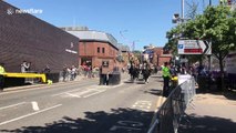 The royal wedding rehearsal sweeps through the streets of Windsor in preparation for Prince Harry and Meghan Markle's marriage on Saturday. The band and soldiers march towards the castle. <br /><br />Some 250 members of the armed forces will participate in the wedding procession. After the wedding takes place at St. George's Chapel in the castle, the happy couple will ride around in a carriage as part of the event. <br /><br />Huge crowds turned up on Thursday just for the rehearsal.