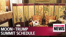 President Moon Jae-in flies to Washington next week for his second White House summit with U.S. President Donald Trump.<br />Their discussions are expected to be dominated by North Korea with Trump scheduled to hold his own highly-anticipated summit with Kim Jong-un on June 12th.<br />Cha Sang-mi reports. <br />The Blue House has revealed President Moon Jae-in's Washington summit schedule for next week.<br />At a press briefing on Friday, the Blue House National Security Office deputy director announced that the President is to arrive in Washington on Monday evening, local time.<br />He will then spend the night at the Blair House, an official VIP guesthouse at the White House.<br />The next morning, Moon is scheduled to meet with Washington's key figures in charge of foreign and security policies.<br />As for the most anticipated part of his trip -- a sit-down with Trump -- the Blue House confirmed, that the meeting will be just between the two leaders, with no attendees other than the interpreters. <br /><br />After the one-on-one, Moon and Trump will move to an expanded meeting over a business lunch.<br />After his meetings with Trump, President Moon will visit the Korean Legation in Washington to commemorate the 130th anniversary of its opening and the 136th anniversary of the 1882 signing of the United States-Korea Treaty of Peace.<br />Moon will touch down back in Korea early Thursday Korean time.<br /><br />The NSC deputy director expressed his wish for a successful Seoul-Washington summit:<br /><br /><br />"We hope President Moon's visit this time will serve as a chance to strengthen the friendship and ties between the heads of South Korea and the U.S. and develop the two countries' alliance and partnership for the future."<br /><br />Over the past year, the two leaders have kept close touch, holding 4 summits and 11 phone conversations. <br />This summit is the fifth meeting between South Korea and the U.S. since President Moon came to office.<br />Cha Sang-mi, Arirang News. <br />