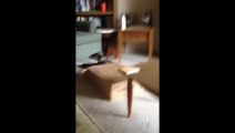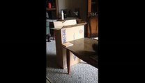 A cat had a lucky escape when it fell five feet after getting stuck in a tree in China's Dandong City on May 6.<br /><br />The video shows a man using a bamboo stick to try to shake the cat down from the huge tree while a group of people hold a piece of cloth under it to catch the animal.<br /><br />Since the cat does not want to jump down, another man climbs onto the tree and uses the stick to try to approach it again.<br /><br />Finally, the cat falls - to screams from onlookers - as it bounces around from branch to branch. <br /><br />But fortunately, the people holding the cloth under the tree are able to catch it successfully.