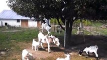 Goat Reaches fruit by balancing on a Donkey!
