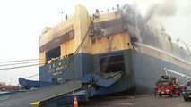 인천항 화물선 화재가 발생한 지 하루가 지났는데도 불길이 완전히 잡히지 않고 있습니다. <br /> <br />철판으로 된 선박이라 불에 달궈져 있는 데다 내부는 연기와 가스가 가득해 소방관 진입이 어렵기 때문입니다. <br /> <br />김종술 기자가 취재했습니다. <br /> <br />[기자] <br />외부에서 뚫은 화물선 구멍에서 연기가 계속 나오고 있습니다. <br /> <br />화물선 뒤쪽이 가장 심하고 앞에서도 흰 연기가 뿜어져 나옵니다. <br /> <br />연기가 나오는 곳을 중심으로 소방관들이 물도 뿌리고 추가로 구멍도 뚫습니다. <br /> <br />바다에서는 경비함까지 동원돼 화물선에 물을 뿌립니다. <br /> <br />선박 외부는 화재로 심하게 그을렸고 내부에 투입된 물 때문인지 배는 한쪽으로 기울어져 있습니다. <br /> <br />인천항 화물선에서 불이 난 지 하루가 지났지만 불길은 완전히 잡히지 않고 있습니다. <br /> <br />선박이 불에 달궈져 있는 데다 내부는 연기와 가스로 가득 차서 소방관 진입이 어렵기 때문입니다. <br /> <br />[박성석 / 인천 중부 소방서장 : 선박 구조상 밀폐되고 철판으로 되어있고 천 4백여 대의 차량이 타는 열과 연기 등으로 내부는 벌건 화덕과 같아 진입이 어려웠고…] <br /> <br />소방 당국은 배에 구멍을 내는 작업을 계속하면서 열과 연기를 빼내고 배 뒤편에서 대원들을 투입해 화재 진압을 마무리할 계획입니다. <br /> <br />그러나 철편이 두껍고 벌겋게 달궈져 있는 상태라 완전 진화까지는 다소 시간이 걸릴 것으로 예상하고 있습니다. <br /> <br />5만 톤 급인 이 화물선에는 현재 2천 4백여 대의 중고차가 실려 있고 이 가운데 천2백 대 이상이 소실된 것으로 추정되고 있습니다. <br /> <br />인천 소방본부는 화물선 11층에 적재된 중고차에서 엔진 과열로 불이 난 것으로 보고 정확한 화재 원인과 피해 규모를 조사하고 있습니다. <br /> <br />YTN 김종술[kjs@ytn.co.kr]입니다.<br /><br />▶ 기사 원문 : http://www.ytn.co.kr/_ln/0103_201805221643403807<br />▶ 제보 안내 : http://goo.gl/gEvsAL, 모바일앱, 8585@ytn.co.kr, #2424<br /><br />▣ YTN 데일리모션 채널 구독 : http://goo.gl/oXJWJs<br /><br />[ 한국 뉴스 채널 와이티엔 / Korea News Channel YTN ]
