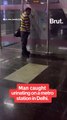 An investigation has been launched after a bus driver was apparently caught on film - weeing out the door of his bus. The film shot by a passerby appears to show the cheeky driver zipping up is flies after peeing out of the gap beside the central doors of his empty bus. Johnson Rotimi, captured the embarrassing moment through the window of the Arriva bus parked in Crouch End, London.<br />Baffled Johnson said: "I just happened to walk by and I saw him doing his thing."He actually hadn't left the bus at the time."You know the second doors? He was actually peeing in the corner with his back facing towards me, through the little gap between the doors and the bus."When I saw him I was kind of shocked to be honest, then I quickly got me phone and started filming it. "He was quite angry when he realised. He did give me a bit of a middle finger." The moustached driver was taking a break to check his bus - the W3 from Finsbury Park to Northumberland Park - when he stopped to spend a penny in Elmfield Avenue.