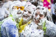 Hundreds of students, many in fancy dress and armed with shaving foam, take part in the annual Raisin Monday, the traditional foam fight at the University of St Andrews which took place on the Lower College Lawn.