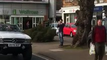 This is the moment the former Top Gear crew turned heads in a village while filming their new TV show - driving a bizarre jacked - up Mercedes with enormous off road wheels. Jeremy Clarkson, 55, was behind the wheel of the modified 1970s car which apparently cruised up and down the high street in quiet Cobham, Surrey, (Thurs). Footage shows the disgraced presenter slowing down to ask onlookers "are you filming this car because it's excellent?" James May was in the passenger seat while Richard Hammond can be seen in the back seat, apparently exasperated over Clarkson's enthusiasm for the unusual vehicle. The trio are currently filming their new Amazon Prime TV programme following Clarkson's infamous 'fracas' with a BBC producer last year.