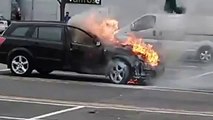 The footage shows fierce orange flames coming out of the passenger side of the car. Plumes of white smoke is initially seen spewing from under the bonnet before turning thicker and greyer as the fire takes hold. The driver's window then dramatically shatters due to the intense heat inside the Corsa van and flames are seen to billow through. As the fire brigade turns up the entire car in engulfed in flames and the white paintwork of the vehicle is swiftly turned black. The inferno is just one of dozens of car fires that had inflicted the supermini across the country.