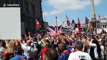 Protesters gather outside Leeds Crown Court in support of former EDL leader Tommy Robinson on June 1. They chant "Tommy Tommy, Tommy Tommy Tommy Tommy Robinson" <br /><br />Robinson was arrested on May 25.
