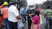 <br /> Les secouristes reprennent leurs recherches lundi 4 juin dans l'espoir de retrouver des survivants après l'éruption du Volcan de Feu au Guatemala, alors que des cendres recouvrent les rues, les maisons et les arbres. Durée: 01:23<br />