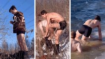 Shawn Mendes Strips for Wet and Wild Polar Plunge