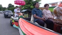 Usually a ride on a horse, or shoulders of close friends when men are ordained as monks in Thailand, but a man ushered into a temple during an ordainment ceremony in jet ski.