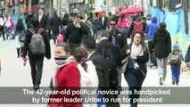 Images of newspaper headlines as Colombians in Bogota remain divided after the presidential elections, which saw conservative Ivan Duque beat leftist rival Gustavo Petro.<br />