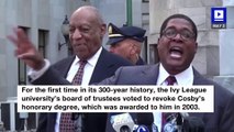 According to the Associated Press, Northwestern University revoked Bill Cosby's honorary degree.<br />The vote to revoke Cosby's Honuorary Doctor of Humane Letters degree was unanimous.<br />It is the first time in the university's 167-year history that a bestowed degree has been revoked.<br />Located in Chicago's suburb of Evanston, the university's board of trustees made the decision due to Cosby's conviction for sexual assault. <br />