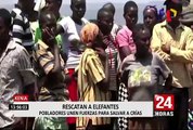 Kenia: pobladores rescatan a elefantes bebés atrapados en laguna